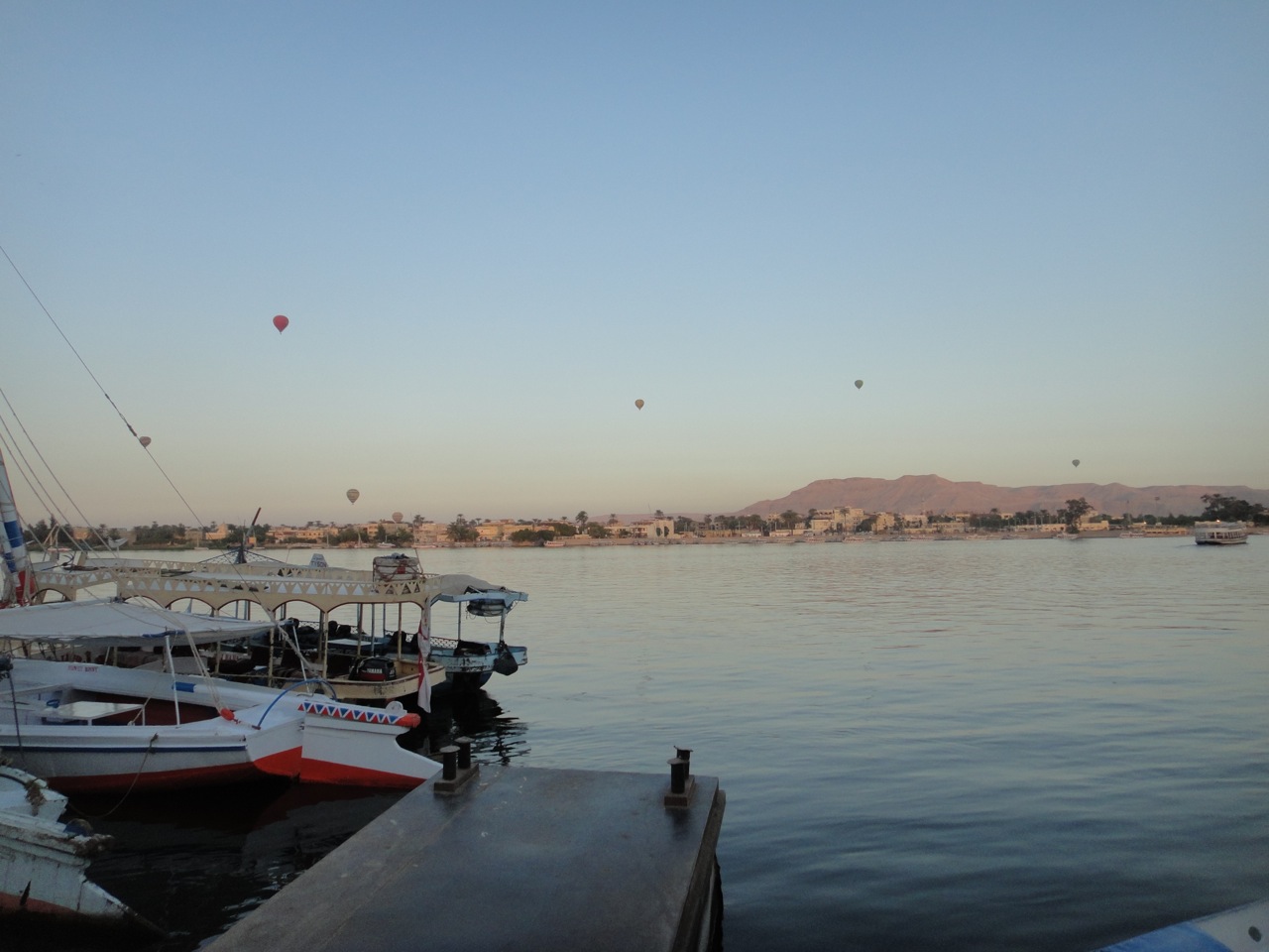 イーストバンクの船着き場でボートに乗り込むと、まず目に飛び込んで来たのは早朝の美しきナイルと、水面にその影をうつしたたくさんの気球だ。今日はどんな一日になるんだろうと胸が高鳴る。エジプトに着いてからこっち、予想どおりの一日だったことなんて一度もない。日本での生活とかけ離れてはいるが、これが今日の自分の現実だ。ボートには韓国から来た一家と、フランス人の一団が乗っていた。
