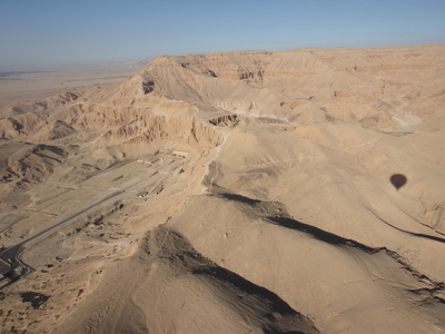 気球から見た王家の谷。盗賊に見つからないように、決してナイル流域の集落からは見えないよう、エル=クルーンの裏側に、王家の墓が密集して祀られている。上空からその歴史を眺めていると、ふと、砂漠の夜に迷子になった心が、まだ完全に戻って来てはいないことを自覚する。周囲のすべてが清々しく、何も心を波立たせるものがないときにこそ、自分の心の穴はますますはっきりと浮かびあがり、努めて今を楽しもうとすればするほど、吸い込まれるようにその暗がりに沈んで行く。いつかこの習慣を終わらせる事ができるのか。贖罪の心が痛まなくなる日は来るのか。今のところそんな日がやって来る気配はない。