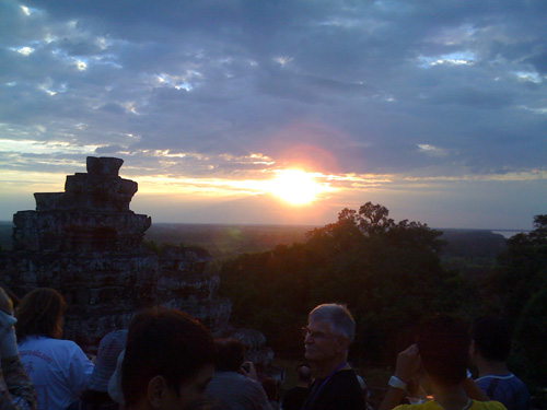プノン・バケンからの夕陽。曇ってたからこの瞬間がピーク。なんの文句もなし。