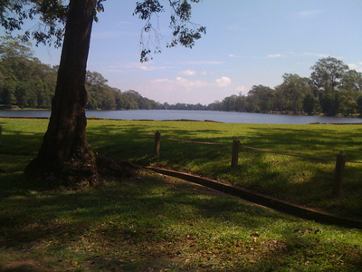れてるときのアンコールワット周辺。景観に息を飲むとはこのことだ。