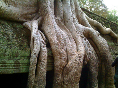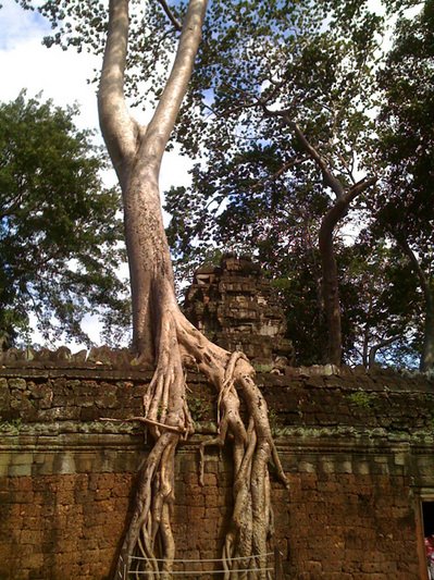 タ・プロームは敢えて榕樹を取り除かずに、その自然の脅威とともに残されている遺跡。